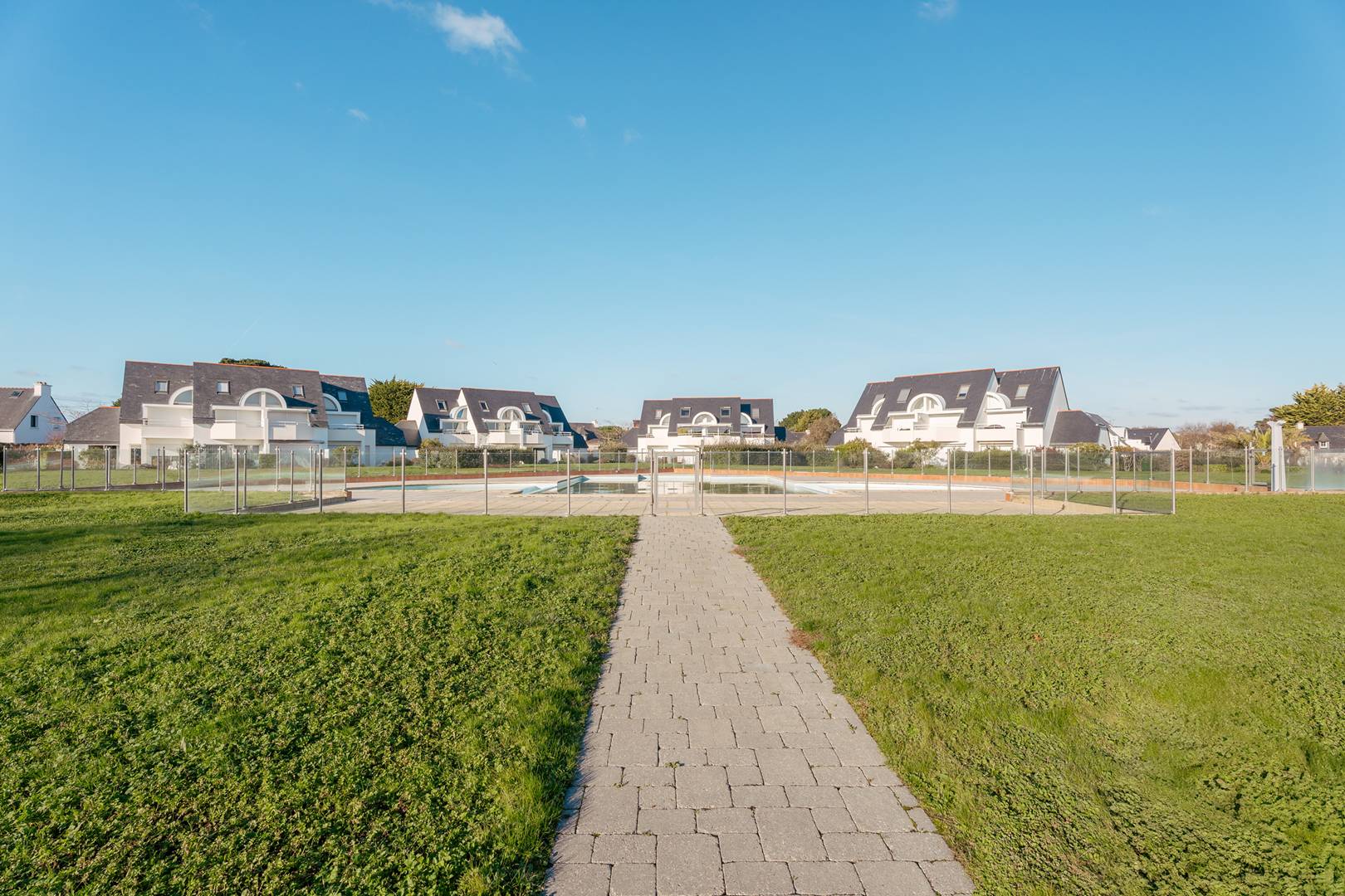 A 1km de la plage de Légénèse, de la Thalassothérapie et du bourg de Carnac, appartement 3 pièces duplex (env. 50m²) pour 6 personnes, situé dans un ensemble résidentiel calme avec piscine collective chauffée et ouverte de mi-juin à mi-septembre, Résidence LE DOMAINE DES TADORNES (Bâtiment J, 1er étage, porte 55):