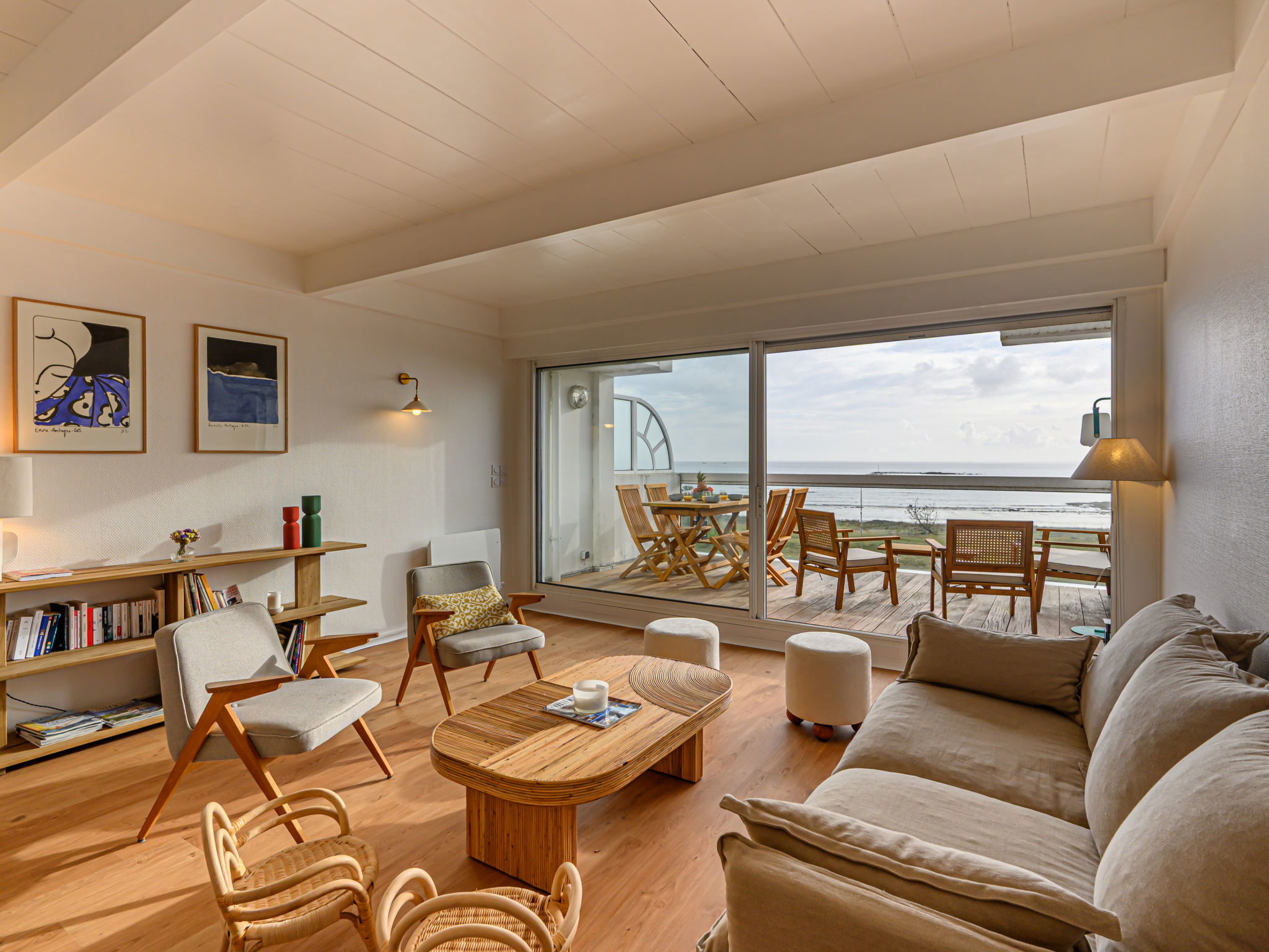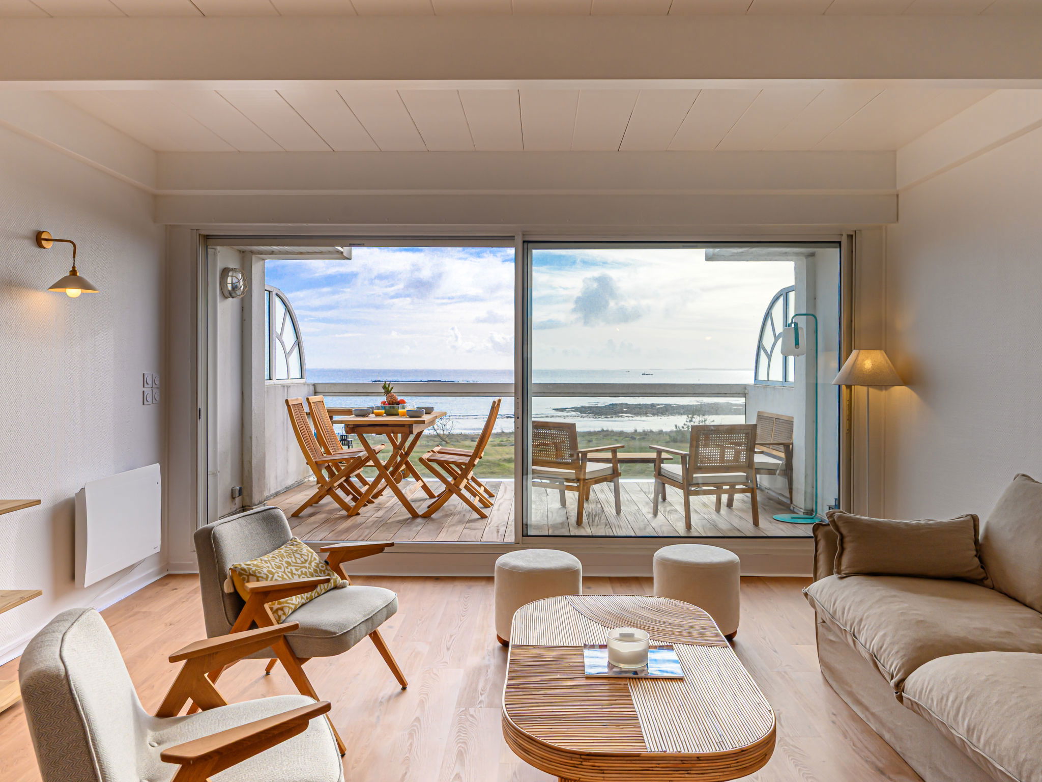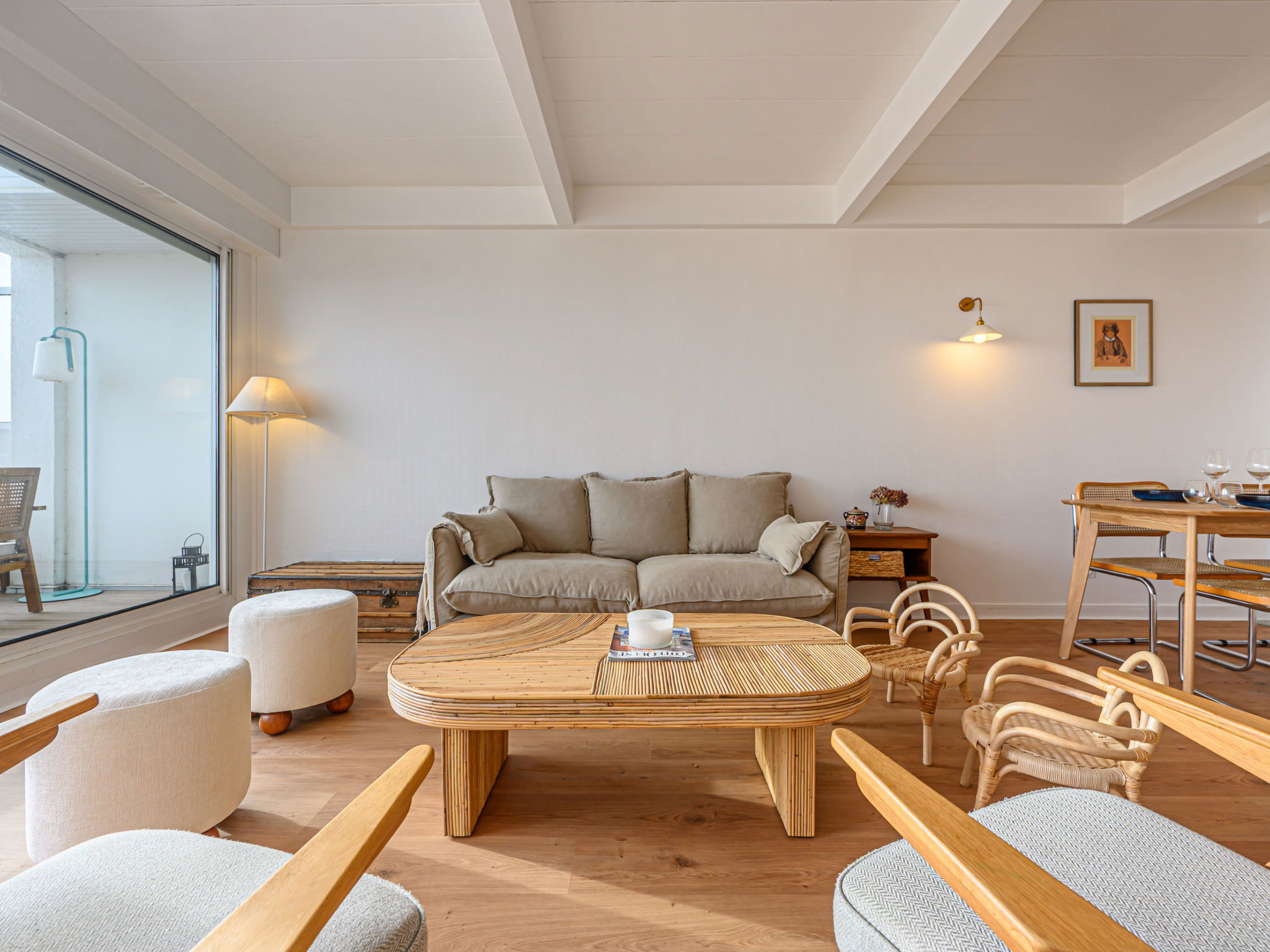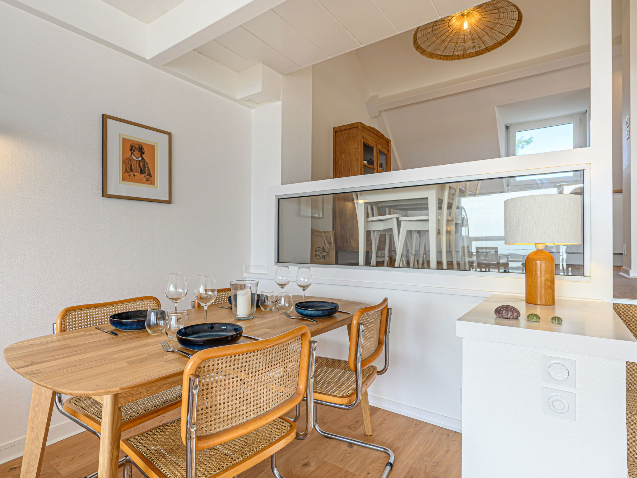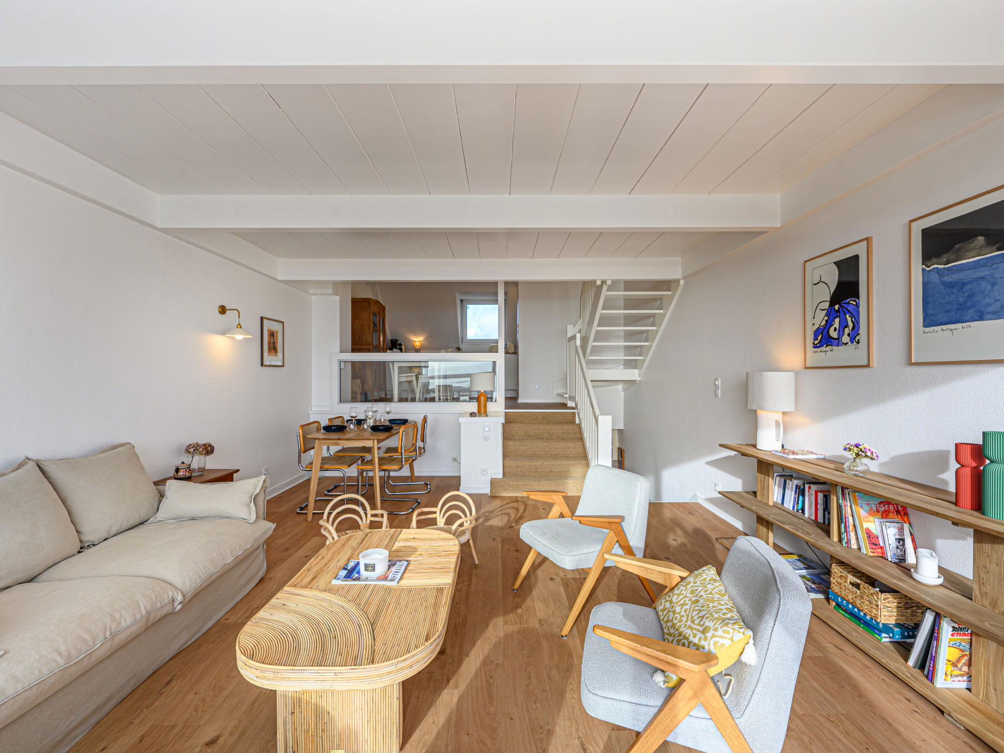 Appartement sur 2 niveaux 3 pièces 80 m2 au 1er étage. Complètement rénové en 2025, aménagement agréable: séjour/salle à manger avec TV (écran plat). Sortie sur la terrasse. 1 chambre avec 2 lits (90 cm, longueur 190 cm). Cuisine ouverte (four, lave-vaisselle, 3 plaques à induction, grille-pain, bouilloire électrique, cafetière électrique, Capsules pour machine à café (Nespresso)). Salle de bains, WC séparé, double vasque. À l'étage supérieur: 1 chambre avec 1 grand-lit (1 x 160 cm, longueur 180 cm) avec salle de bains et WC séparés. Terrasse 13 m2, situation sud. Meubles de terrasse. Vue panoramique sur la mer. A disposition: lave-linge, chaise haute pour enfant, lit bébé jusqu'à 2 ans, sèche-cheveux. Internet (Connexion WIFI, gratuit). Place de parking No 2.3. Veuillez noter: logement non-fumeur. Détecteur de fumée. Plancha électrique. Annonce d'un particulier (art 155, IV du CGI). 5603400099617
