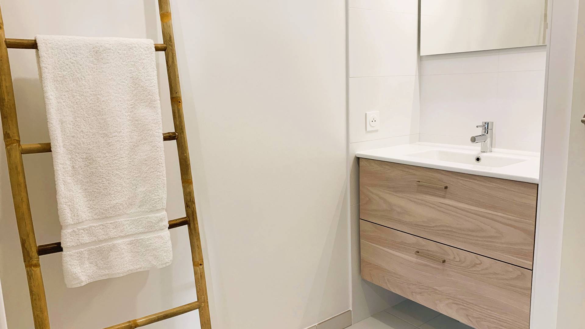- Salle d'eau avec grande douche bac italien