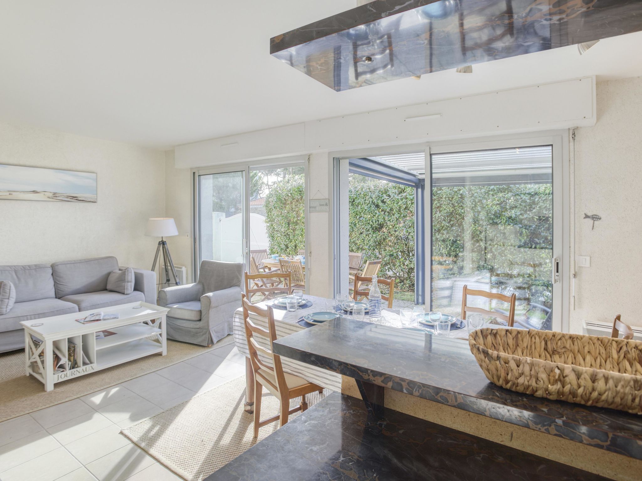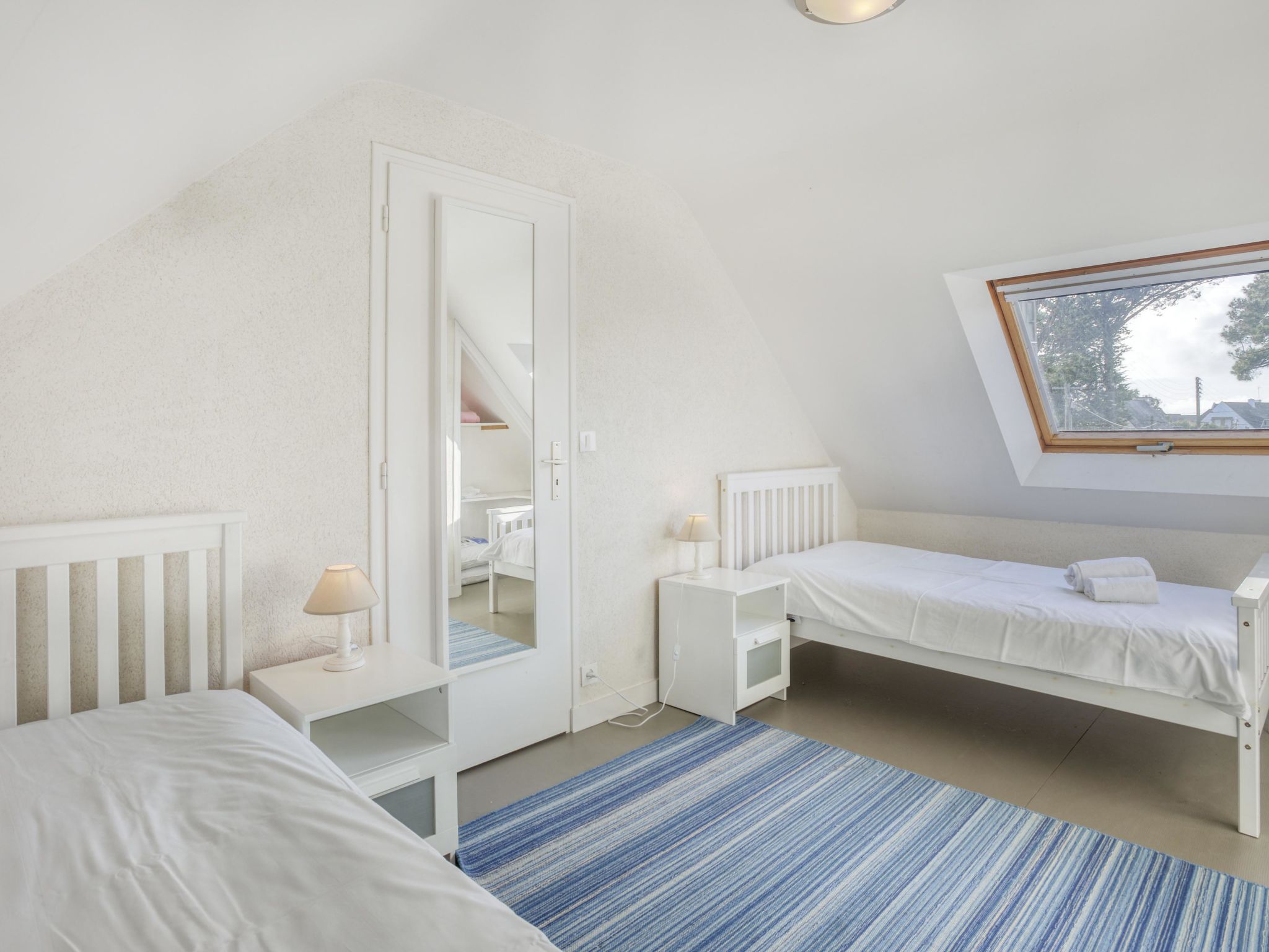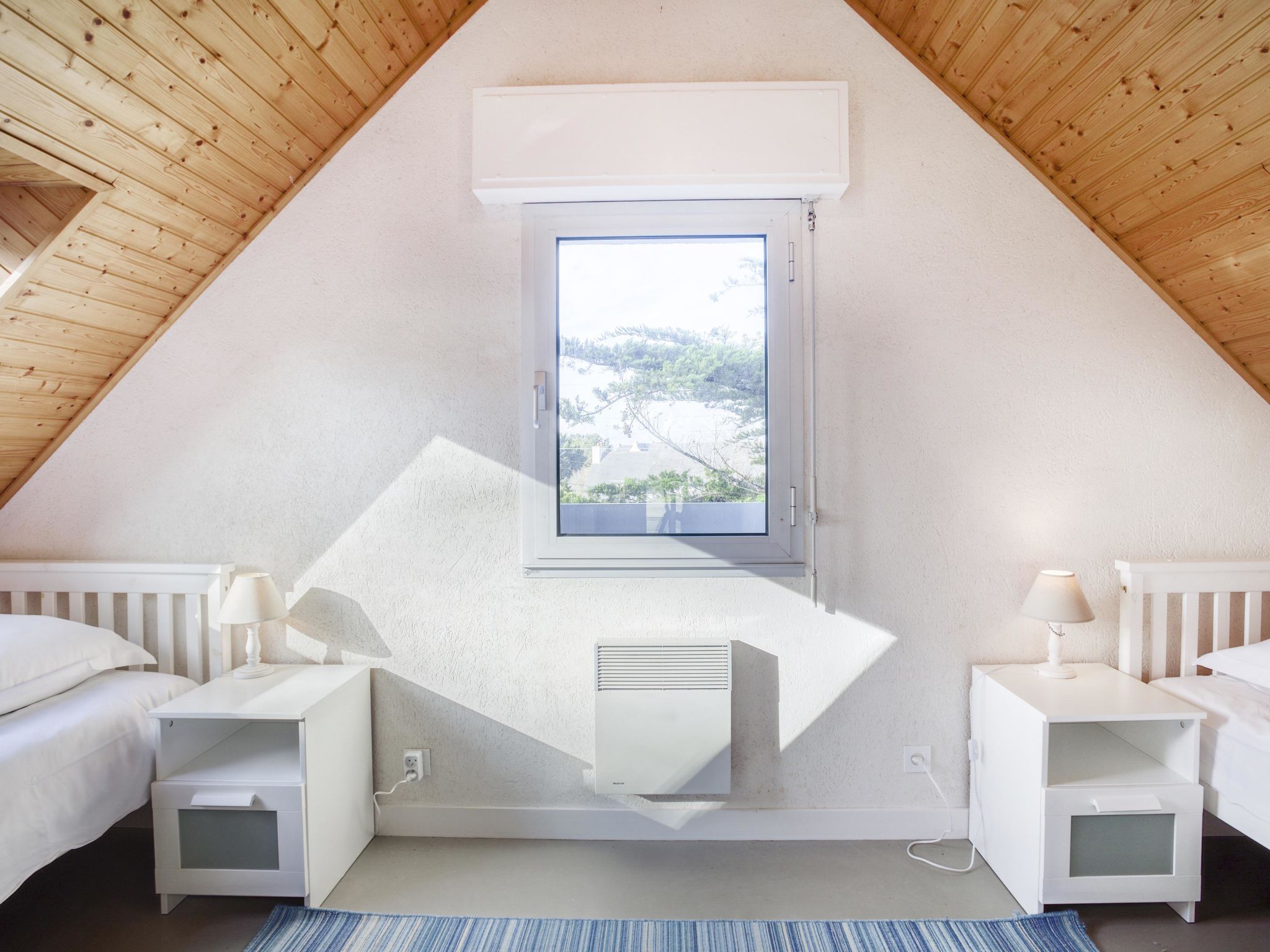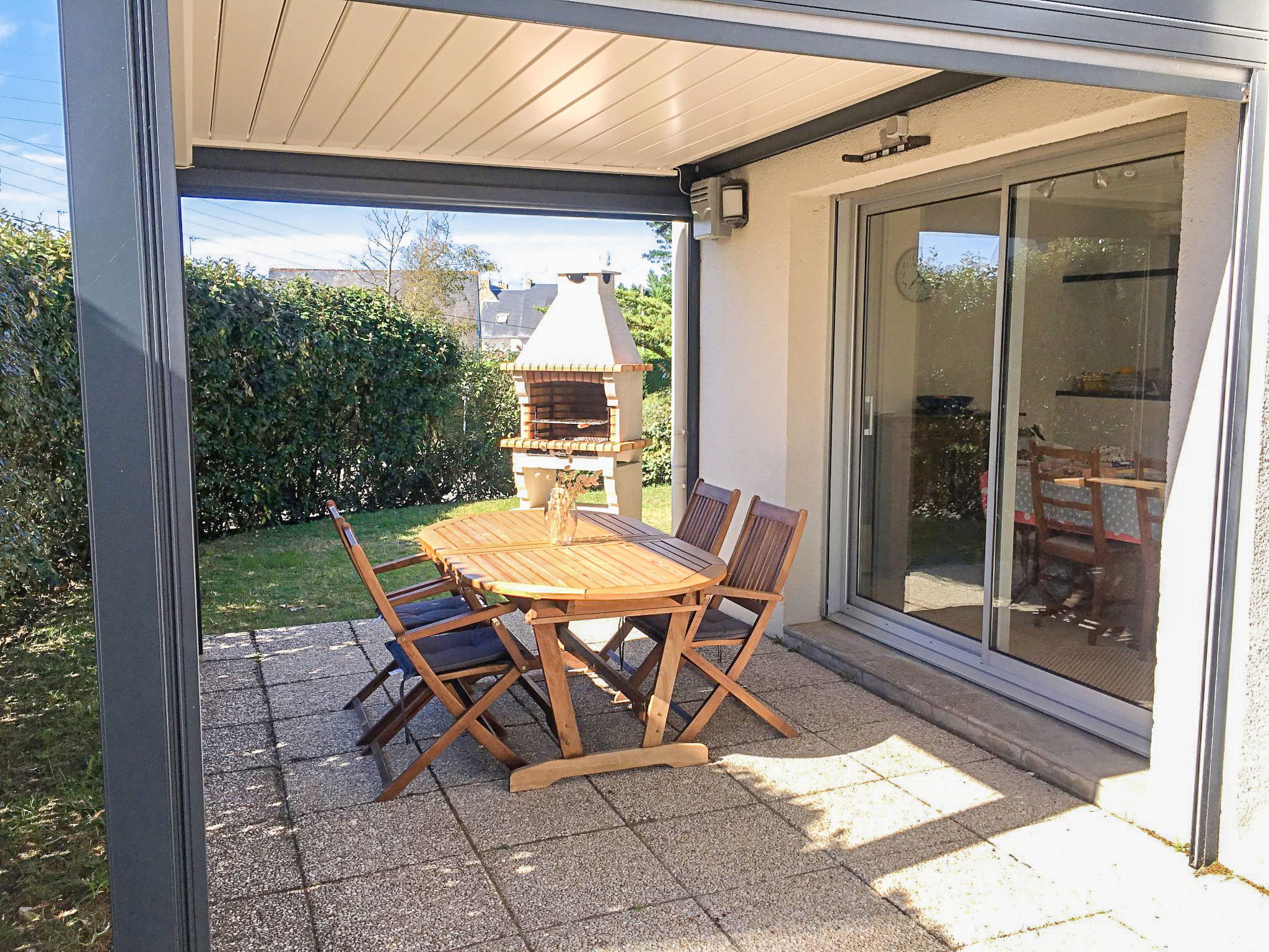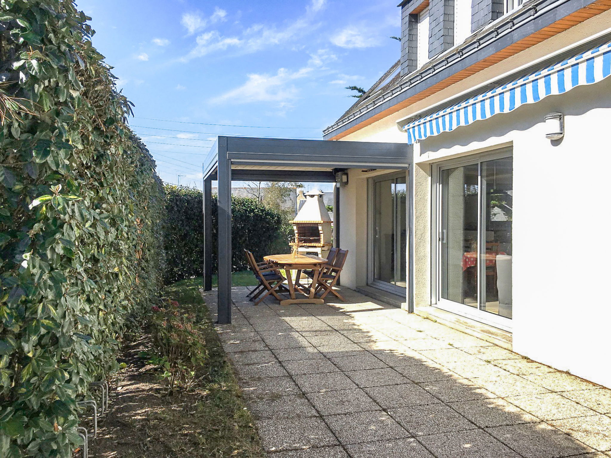 Maison 4 pièces 110 m2 sur 2 niveaux. Aménagement agréable: séjour/salle à manger avec TV (écran plat). Sortie sur le jardin, sur la terrasse. 1 chambre avec 1 grand-lit (1 x 140 cm, longueur 190 cm). Cuisine ouverte (four, lave-vaisselle, 4 plaques à induction, réfrigérateur, grille-pain, bouilloire électrique, four micro-ondes, congélateur, cafetière électrique). Douche, bidet, WC séparé. À l'étage supérieur: 2 chambres, chaque chambre avec: 2 lits (90 cm, longueur 190 cm). Douche, WC séparé. Chauffage électrique. Terrasse 30 m2. Meubles de terrasse. Vue sur le jardin et la localité. A disposition: lave-linge. Place de parking. Veuillez noter: détecteur de fumée. Carnac: Maison individuelle "Maison Pauline", de 2 étages. Dans la localité Carnac, à 50 m de la mer, à 50 m de la plage. Magasins 1.4 km, supermarché 1.4 km, restaurant 300 m, plage de sable "Légenèse" 50 m, centre thermal "Thalassothérapie Thalazur Carnac". Terrain de golf (18 trous) 15 km, ecole de surf 6 km, ecole de voile 1.2 km, tennis 800 m. Attractions à proximité: Carnac et les alignements, La Trinité sur Mer 4 km, Presqu'ile de Quiberon 15 km, Vannes 35 km, Lorient 55 km, Belle Ile en Mer, Houat, Hoedic. Région de randonnées: Le Golfe du Morbihan.